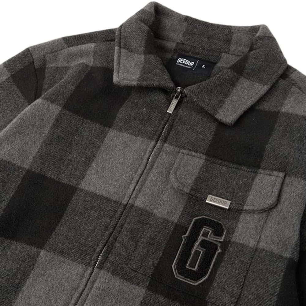 Crafted from a durable cotton blend, the Geedup Play For Keeps Flannel Jacket offers both comfort and durability. The jacket's black and grey plaid pattern creates a versatile aesthetic, suitable for both casual and semi-formal occasions. Featuring a relaxed fit, it’s designed with comfort in mind, allowing for easy layering over hoodies or tees. The button-up front closure and dual chest pockets enhance functionality, while the reinforced cuffs and collar provide added durability. The attention to detail is evident, from the custom "Play For Keeps" branding subtly embroidered on the chest to the high-quality construction that ensures longevity. This jacket exemplifies Geedup’s commitment to delivering premium streetwear essentials that stand the test of time.