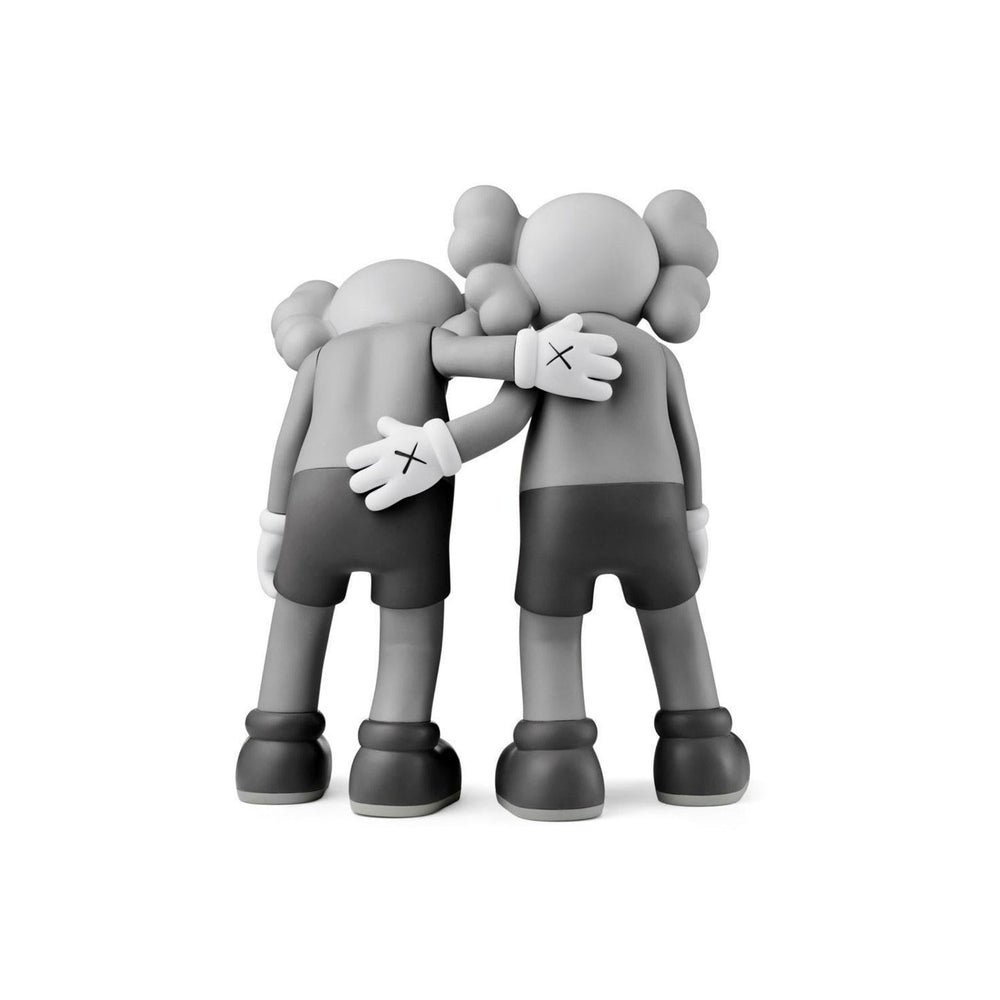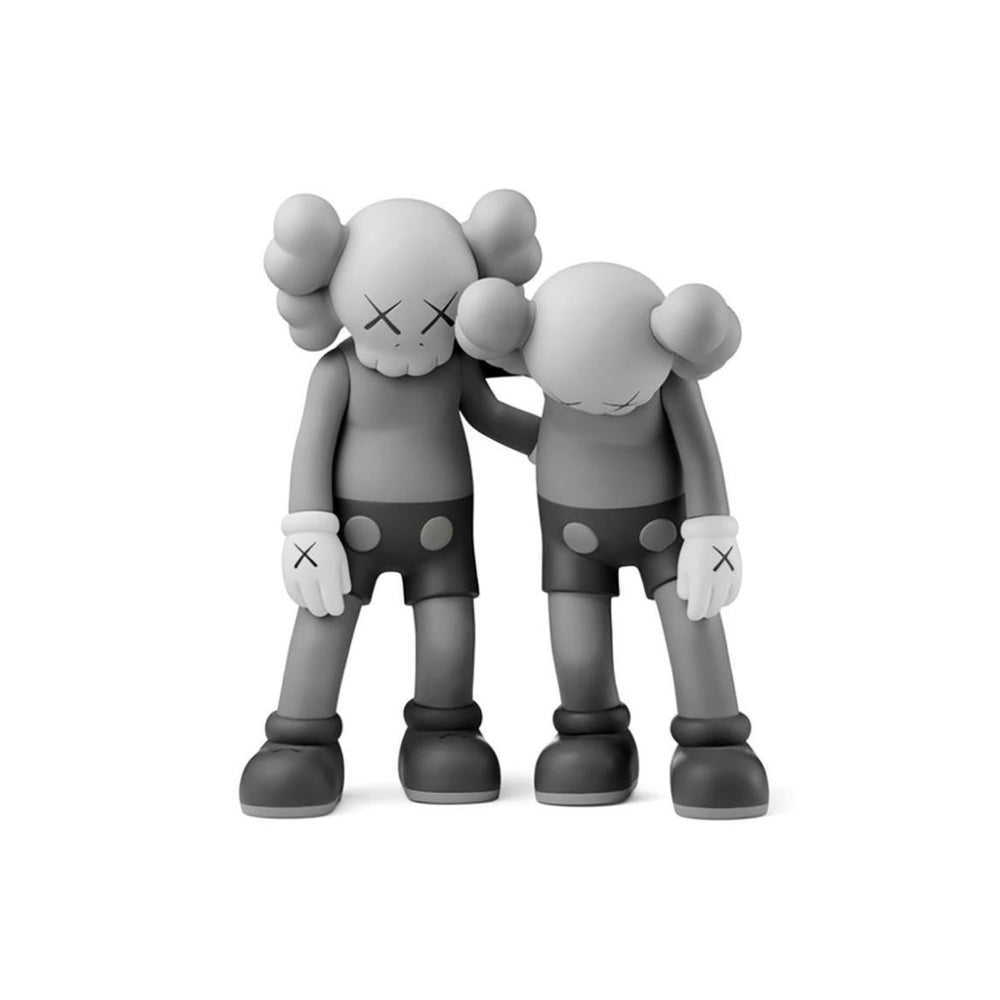 Buy the KAWS Along the Way 'Grey' (2019) Cast vinyl in grey and white Figurines with the motif of embracing figures, downward-facing heads, moveable arms, and brand stamps at the undersides of the feet, created by KAWS and produced by Medicom, are called Along the Way (includes the box). SKU: KAWSX20816 Measurements: Height 11", Width 8.75", Depth 5" Condition: Brand New