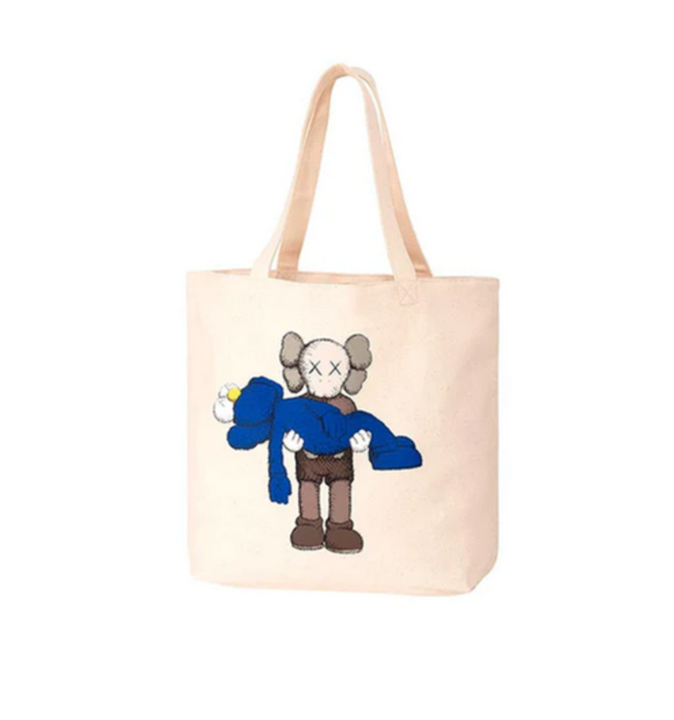 The KAWS x Uniqlo Gone Tote Bag Natural was first made available as part of the final collaboration collection between the two brands.