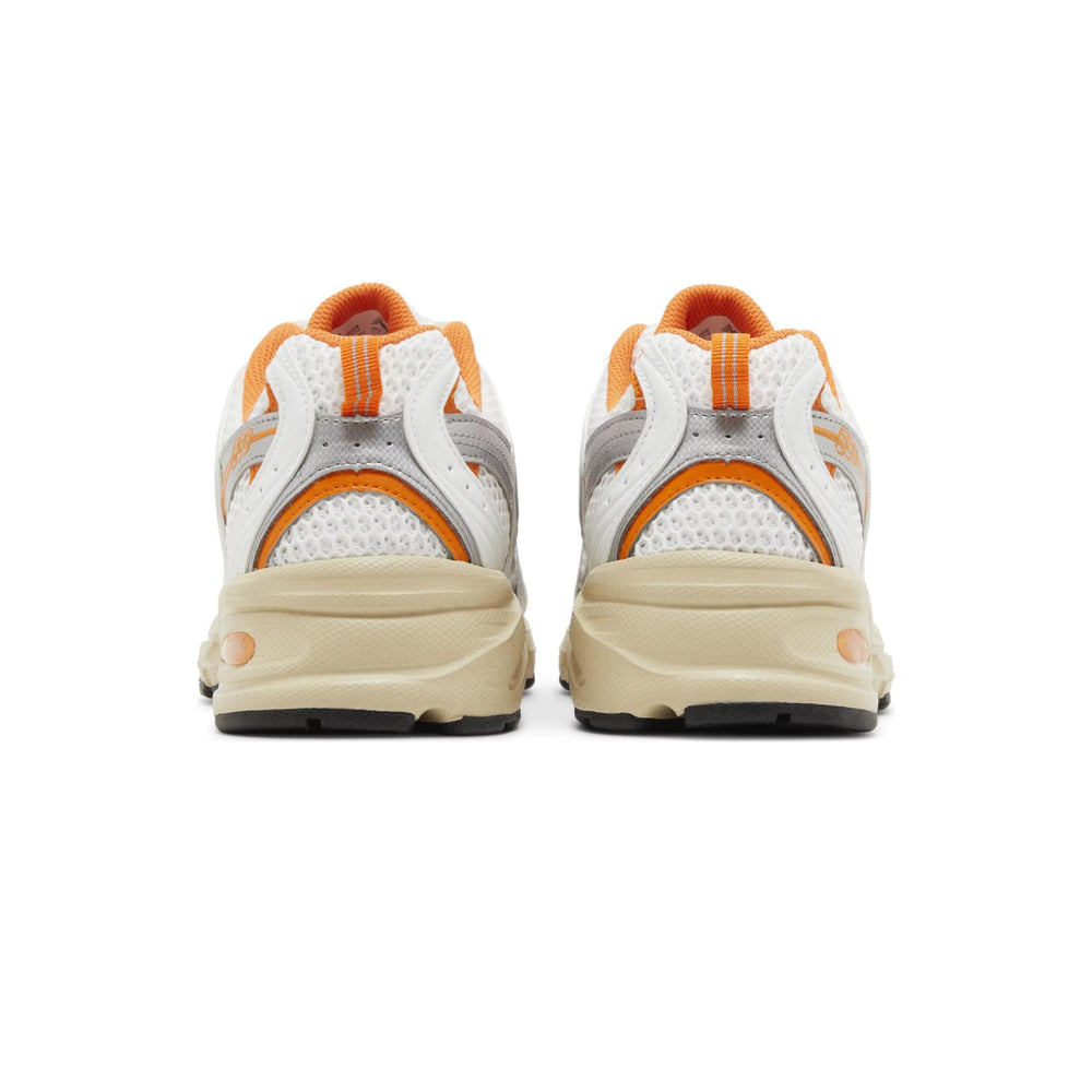 The New Balance 530 'White Sun Glow' features a pristine white mesh and leather upper, providing both breathability and durability. The 'Sun Glow' accents on the midsole, heel, and tongue add a refreshing touch, evoking a sense of warmth and energy. This colorway is a nod to the brand's tradition of subtle yet impactful design choices, ensuring the sneaker remains versatile and stylish. The ENCAP cushioning technology, a hallmark of New Balance's commitment to comfort, is integrated into the midsole, offering superior support and shock absorption. The rubber outsole ensures traction and durability, making it suitable for various activities, from casual strolls to intense workouts.