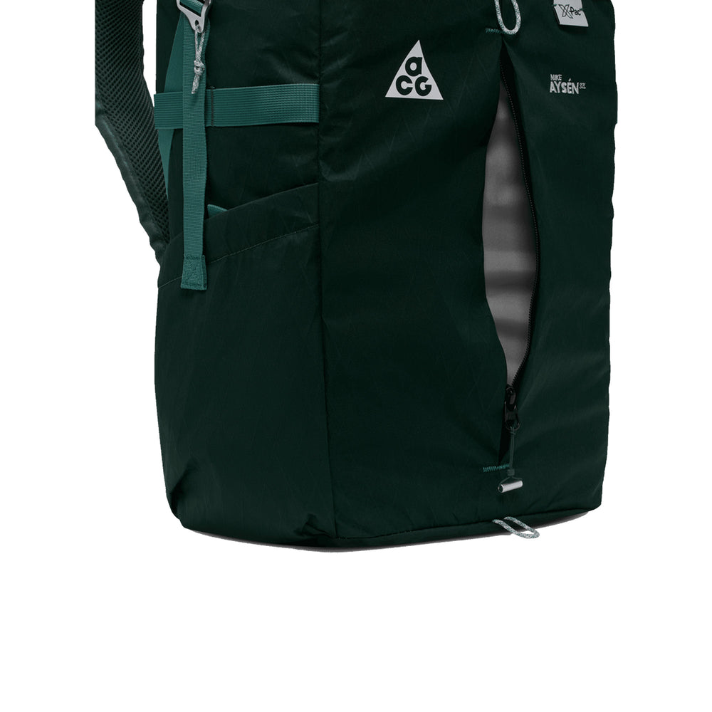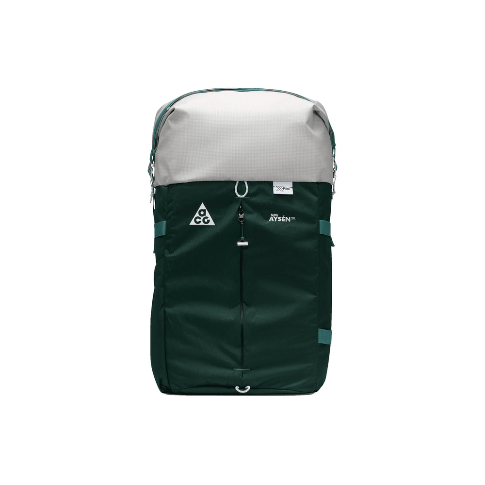 The Nike ACG Aysen Backpack 'Vintage Green' represents a masterful convergence of rugged functionality and timeless design. As a prominent piece in Nike's ACG (All Conditions Gear) collection, this backpack exemplifies durability and style, tailored for both urban and outdoor adventures. The 'Vintage Green' colorway pays homage to classic outdoor aesthetics, integrating earthy tones with modern utility.