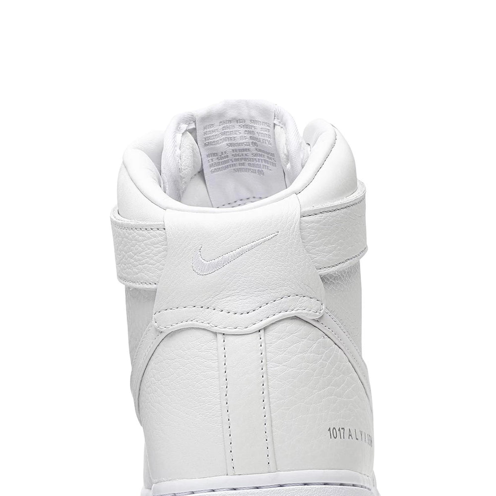 The Nike Air Force 1 High 1017 ALYX 9SM 'White' features a crisp white leather upper, maintaining the classic AF1 design while introducing subtle yet impactful details. The sneaker is adorned with a signature anodized aluminum buckle on the ankle strap, a hallmark of ALYX's industrial-inspired approach. The tonal laces and branding ensure the focus remains on the texture and form, while the co-branded tongue tag and insole highlight the collaborative nature of the design. The Nike Air sole unit delivers reliable comfort and cushioning, making this sneaker as functional as it is fashionable. This collaboration continues to push the boundaries of sneaker culture, merging luxury aesthetics with street-ready wearability.