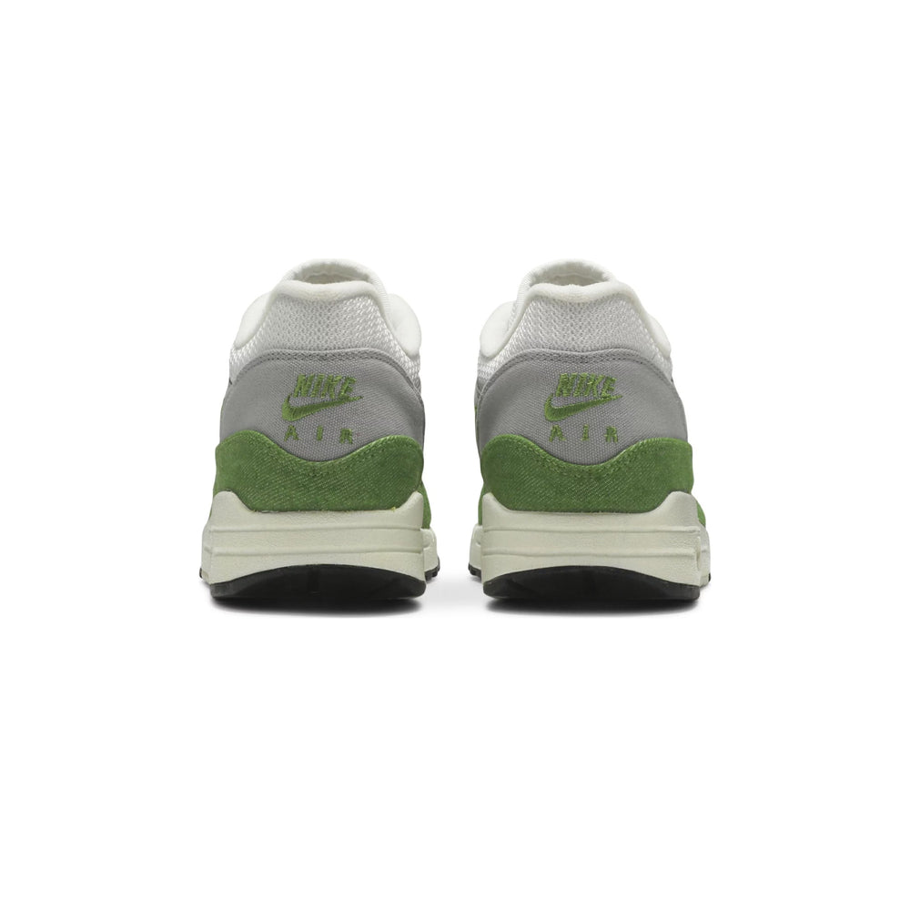 Marking its 20th anniversary, the Air Max 1 Patta 'Chlorophyll' is an homage to the original Patta x Nike Air Max 1 collaboration from 2009. The sneaker features a rich "Chlorophyll" green suede upper, complemented by "Sail" leather overlays that create a sophisticated contrast. This edition pays tribute to the original with a reimagined colorway and premium materials. The signature Nike Air Max cushioning is showcased through a translucent outsole, providing both comfort and visual appeal. Patta branding is subtly integrated into the design with co-branded tongue tags and heel counters, reflecting the brand's iconic style and commitment to quality. The 'Chlorophyll' edition also introduces updated design details, including a refined mesh toe box and a modernized Air Max sole unit.