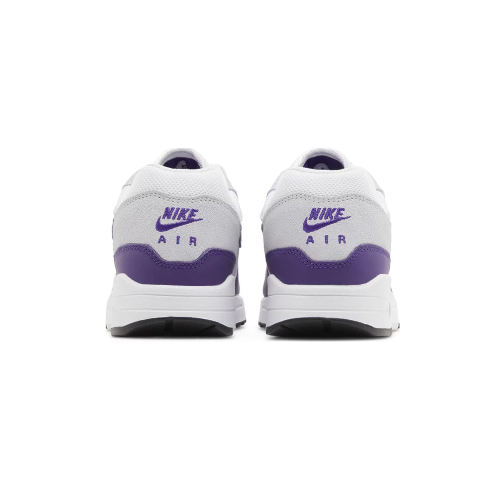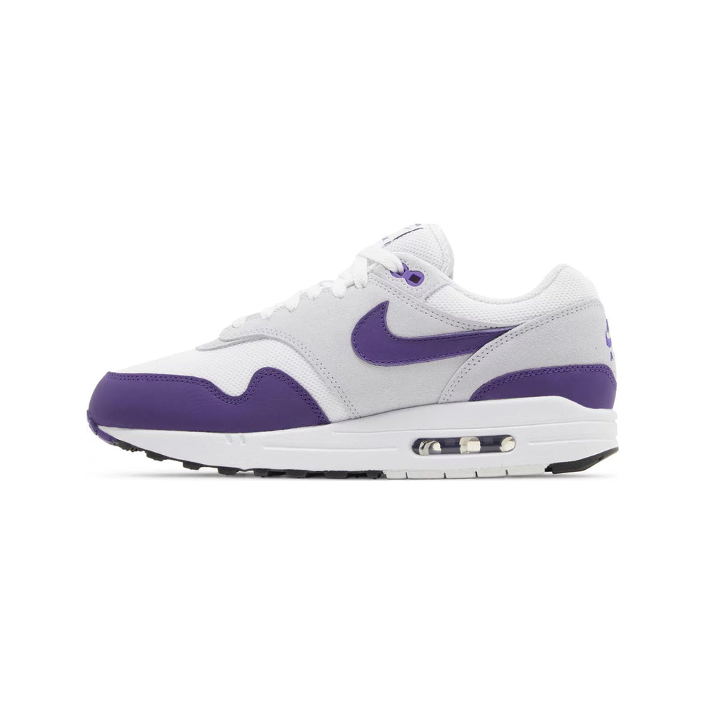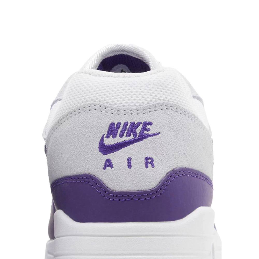 The Nike Air Max 1 SC 'Field Purple' stands out with its vibrant "Field Purple" suede overlays, paired elegantly with a clean white mesh base that emphasizes breathability and comfort. The iconic Swoosh appears in a sleek black finish, creating a sharp contrast against the purple accents. A pop of "University Gold" on the tongue branding adds an unexpected splash of brightness, while the classic Air Max unit in the sole ensures the premium cushioning that Nike is known for. The midsole is finished in a crisp white, grounding the design, while the black rubber outsole provides durable traction. This fresh yet timeless sneaker is perfect for those seeking a blend of nostalgia and modern flair.