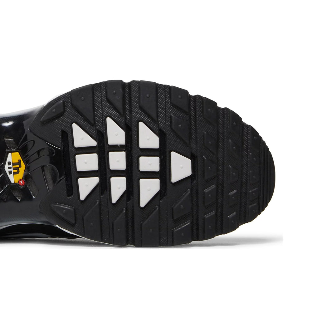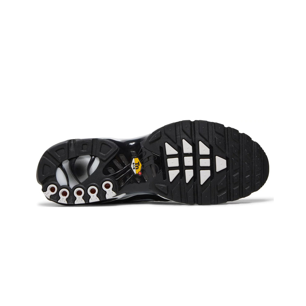 Buy the Nike Air Max Plus TN 'Black Metallic Silver' (2022) in a clean “Black,” “Metallic Silver” and “White” colorway. Base layers consist of honeycomb-shaped mesh that indulge in the pair’s color trifecta via a compelling gradient on these black and white TNs. Palm tree-inspired TPU overlays also opt for the aforementioned color shift, as do the whale tail-shaped mid-foot shanks underfoot on these TN shoes.
