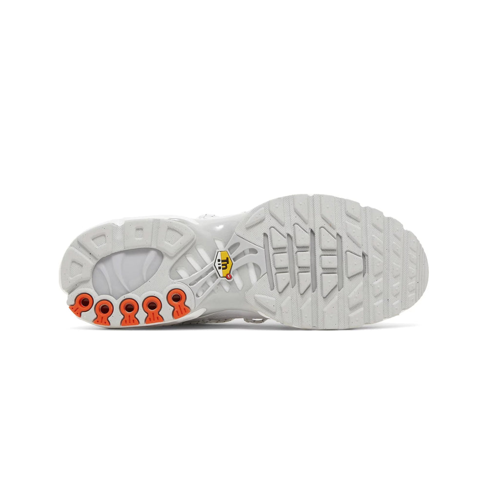 The Nike Air Max Plus TN Utility 'Safety Orange Pure Platinum' (2024) represents the latest evolution in Nike's innovative Air Max Plus lineup. This iteration is designed to combine high-performance functionality with eye-catching aesthetics, ensuring it stands out in both urban environments and athletic settings. The 'Safety Orange Pure Platinum' colorway merges vibrant, energetic hues with sleek, modern elements, making it a must-have for sneaker enthusiasts and athletes alike.