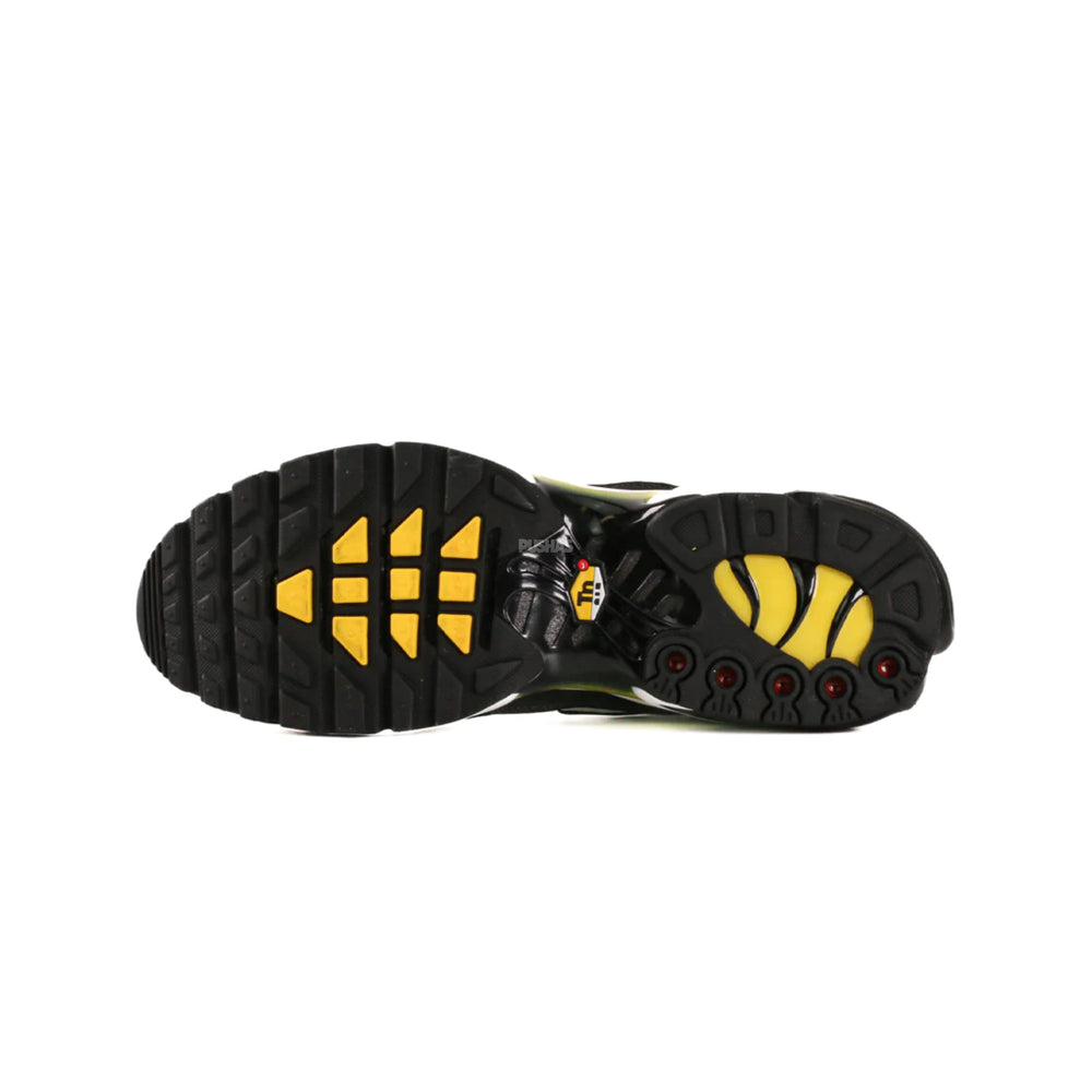 Elevate your sneaker game with the Nike Air Max Plus TN 'Tour Yellow'. This 2022 release features a predominantly black upper, seamlessly integrating a stunning gradient that transitions from yellow to white. This dynamic colorway symbolizes energy and movement, making the sneaker a striking choice for both casual wear and athletic pursuits.