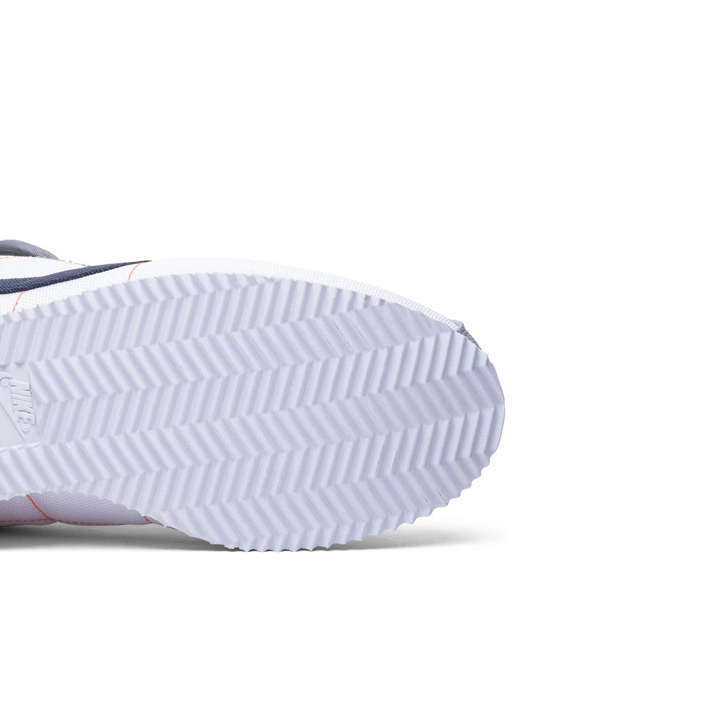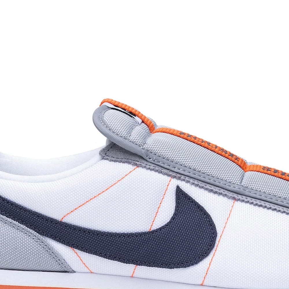 The Nike Cortez Basic Slip x Kendrick Lamar 'White' is constructed with a sleek, slip-on design that eliminates traditional laces in favor of a more streamlined and modern aesthetic. The upper features a pristine white leather base, accentuated by grey suede overlays that add a subtle contrast and texture to the overall design. A standout element is the unique toggle lacing system, which not only enhances the sneaker's functionality but also pays homage to Lamar's innovative approach to style. The branding is understated, with a small Swoosh on the lateral side and Kendrick Lamar's signature logo on the heel tab, emphasizing the collaborative nature of the design. The slip-on construction ensures ease of wear while maintaining the iconic Cortez silhouette, making it a versatile addition to any sneaker collection.