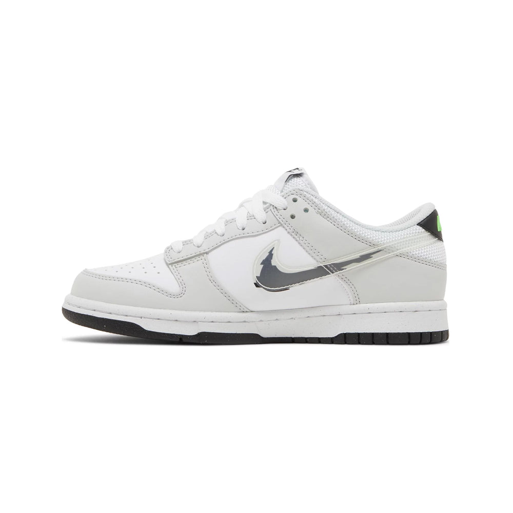 The Nike Dunk Low 'Glitch Swoosh' GS (2022) exemplifies Nike's commitment to innovative design and youthful energy. This release reinvents the classic Dunk Low silhouette with a contemporary twist, making it a must-have for sneaker enthusiasts and fashion-forward individuals. The 'Glitch Swoosh' motif adds a modern, edgy aesthetic, setting this model apart from traditional designs.