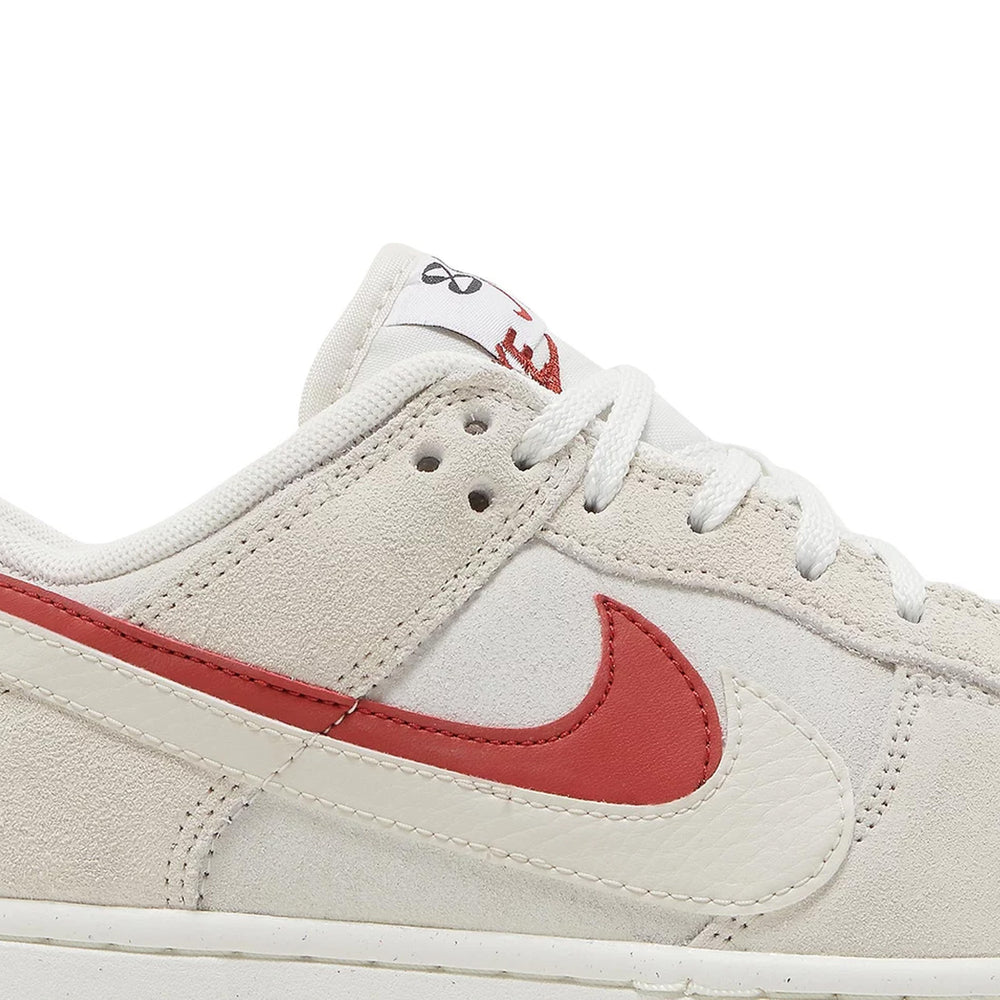The Nike Dunk Low SE 85 Double Swoosh 'Sail Orange' features a soft "Sail" leather upper that provides a neutral base, allowing the bold orange accents to shine. Its standout feature is the double Swoosh, with one in bright orange and the other in a contrasting white, creating a dynamic visual effect. The sneaker also boasts perforations on the toe box for breathability, a padded collar for extra comfort, and durable rubber soles that deliver long-lasting traction. The clean white midsole ties the whole design together, while the orange outsole adds a playful touch.