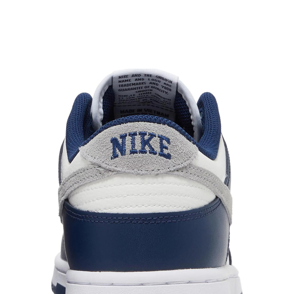 Crafted with a premium leather upper, the Nike Dunk Low 'Summit White Midnight Navy' features a pristine 'Summit White' base that exudes elegance and versatility. The smooth leather construction is complemented by 'Midnight Navy' overlays that provide a striking contrast, enhancing the sneaker's visual appeal. The iconic Nike Swoosh, also in 'Midnight Navy', adds a cohesive touch, while the crisp white midsole and navy outsole complete the look with a balanced, harmonious finish. This iteration stays true to the Dunk Low's heritage with its traditional design elements, yet the elevated color scheme ensures it stands out in any collection.
