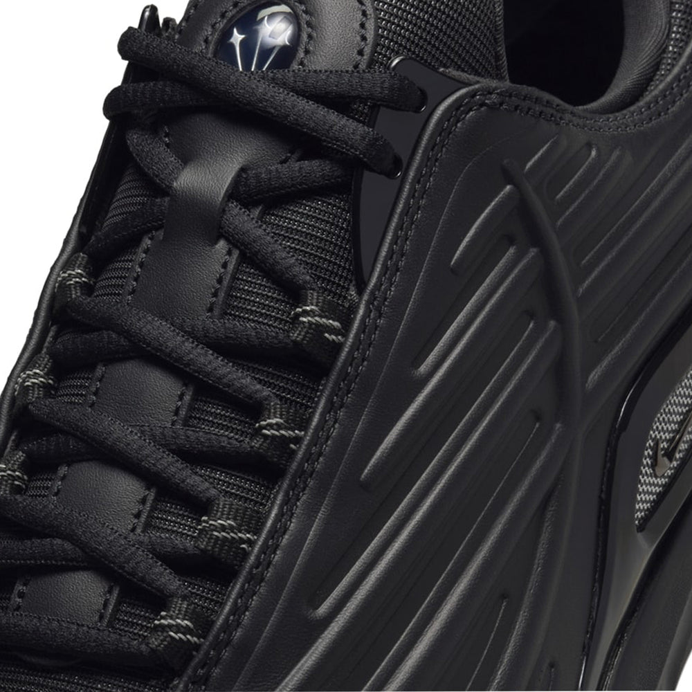 The Hot Step 2 NOCTA 'Black' features a predominantly black colorway, crafted with a combination of premium leather and suede for a sophisticated look. The shoe's clean lines and minimalistic design are accented by a reflective silver Swoosh and NOCTA branding on the heel and tongue, adding a touch of understated elegance. The midsole incorporates advanced cushioning technology for optimal comfort, while the outsole provides superior traction with a unique tread pattern. This sneaker’s design is inspired by the streamlined, contemporary aesthetics of NOCTA, ensuring it stands out both in style and functionality.