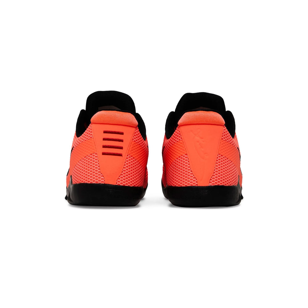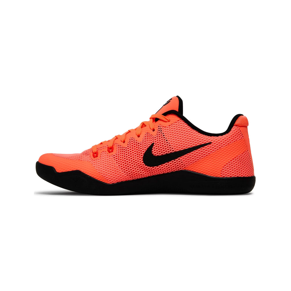 The Kobe 11 EM Low 'Barcelona' features a striking "Black/Total Orange/White" colorway that pays homage to the rich, sun-drenched hues of Barcelona's famed skyline and architectural marvels. The shoe's engineered mesh upper is adorned with a gradient effect, transitioning from a deep black to vibrant orange, which mimics the city's sunset and illuminates the overall design. Nike’s Flyknit technology ensures a snug, supportive fit while enhancing breathability and flexibility. The responsive Lunarlon midsole provides unparalleled cushioning, essential for both on-court performance and off-court comfort. A translucent outsole with a subtle hexagonal pattern adds a touch of elegance, enhancing grip and durability.