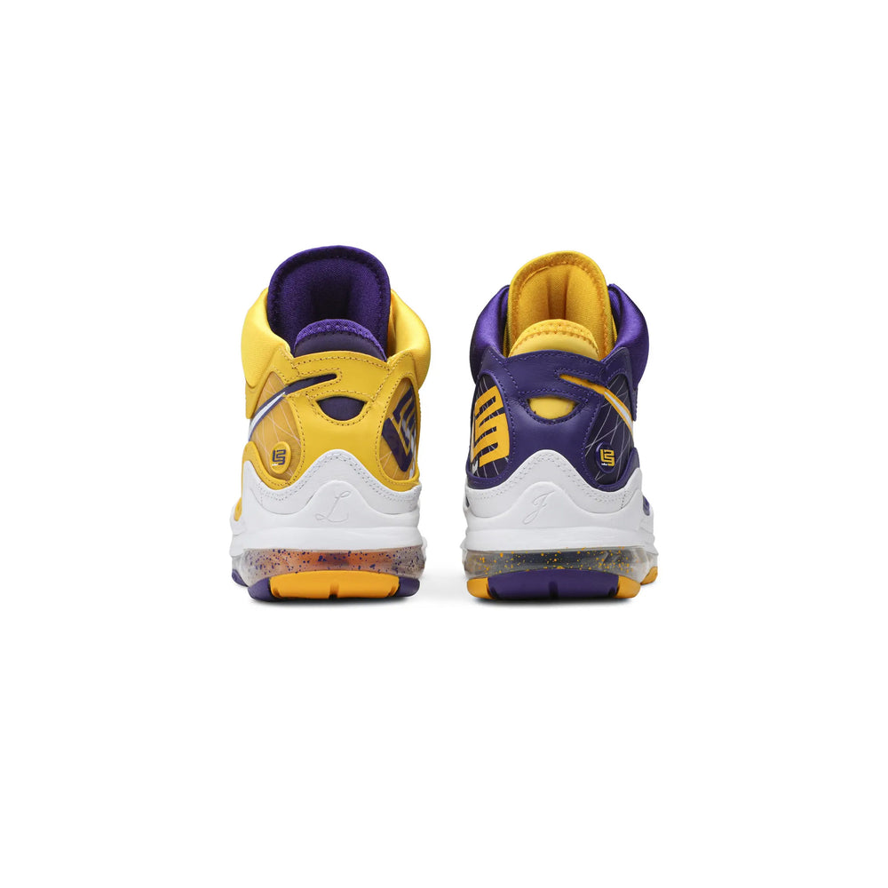 The Nike LeBron 7 'Media Day' (2020) stands as a testament to the seamless fusion of heritage basketball design and bold, statement-making aesthetics. Released in celebration of LeBron James' team allegiance, this highly coveted colorway merges vibrant Lakers-inspired hues with the iconic LeBron 7 silhouette, making it a must-have for fans and collectors alike. Overview The 'Media Day' edition features a mismatched design with alternating purple and yellow hues, a nod to the Los Angeles Lakers' signature colors. The sneaker's upper is crafted from Flywire panels and patent leather overlays, delivering both durability and a striking visual contrast. The midsole incorporates full-length Air Max cushioning for premium comfort and on-court performance. Detailing such as the embroidered Swooshes, LeBron's signature on the heel, and tonal laces complete the look. The translucent outsole adds a polished finish, ensuring the sneaker stands out both on and off the hardwood. Key Highlights • Lakers-Inspired Colorway: Bold mismatched purple and yellow uppers pay homage to LeBron James' team, celebrating his legacy. • High-Performance Design: Flywire panels and full-length Air Max cushioning deliver superior support and comfort for athletes and enthusiasts alike. • Iconic LeBron 7 Silhouette: Combines the heritage of the LeBron line with eye-catching aesthetics, making it a standout in sneaker collections.