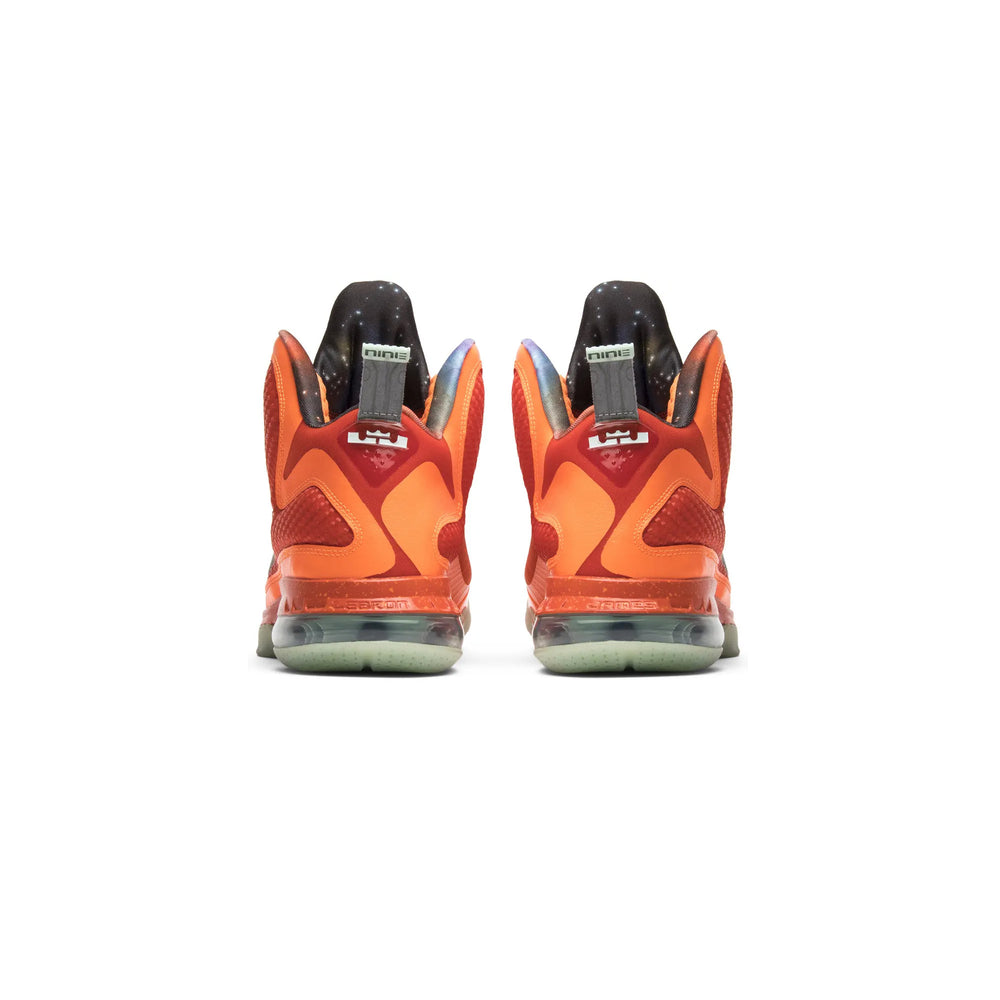 The Nike LeBron 9 'Big Bang AS' (2012) stands as one of the most celebrated releases in LeBron James' signature line, merging bold, cosmic-inspired aesthetics with top-tier basketball performance. Originally launched during the 2012 NBA All-Star Weekend in Orlando, this colorway pays homage to the wonders of outer space, making it an iconic addition to any sneaker collection. Overview The Nike LeBron 9 'Big Bang AS' showcases a striking "Total Orange" upper constructed from a mix of lightweight Hyperfuse and supportive Flywire technologies. This eye-catching hue is complemented by a speckled midsole and a glow-in-the-dark outsole that enhances its intergalactic theme. Adding to its celestial charm, the sneaker features a galaxy-print sockliner and tongue, alongside reflective 3M detailing on the Swooshes and heel tab. The iconic "King James" logo appears on the tongue, emphasizing the player’s legendary status. Released as part of Nike's 'Galaxy Pack,' this colorway remains a grail for sneaker enthusiasts and collectors alike. Key Highlights • Bold Cosmic Design: Features a "Total Orange" upper with galaxy-inspired graphics, glow-in-the-dark elements, and reflective 3M accents for a standout look. • Performance-Driven Construction: Equipped with Hyperfuse and Flywire technology, providing durability and support for both on-court and lifestyle use. • Iconic Galaxy Pack Release: Part of Nike's highly coveted 2012 'Galaxy Pack,' tying into the All-Star Weekend's space exploration theme and securing its place in sneaker history.