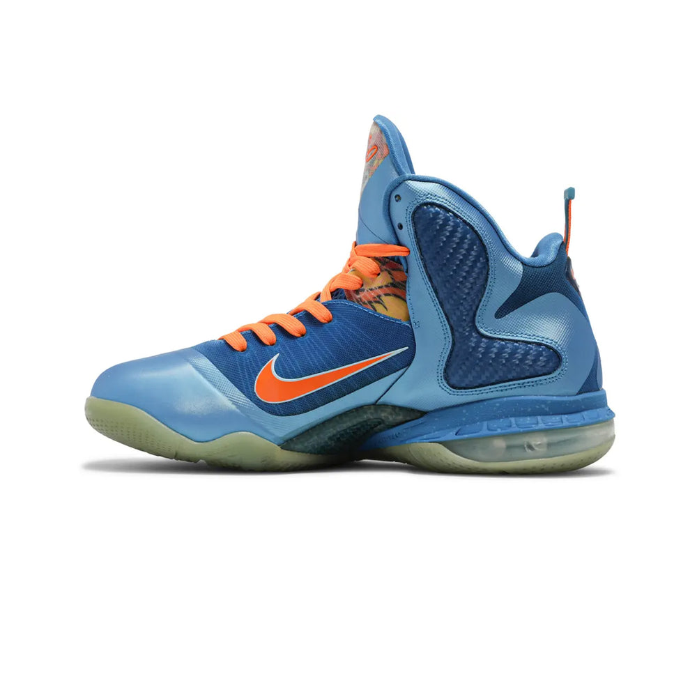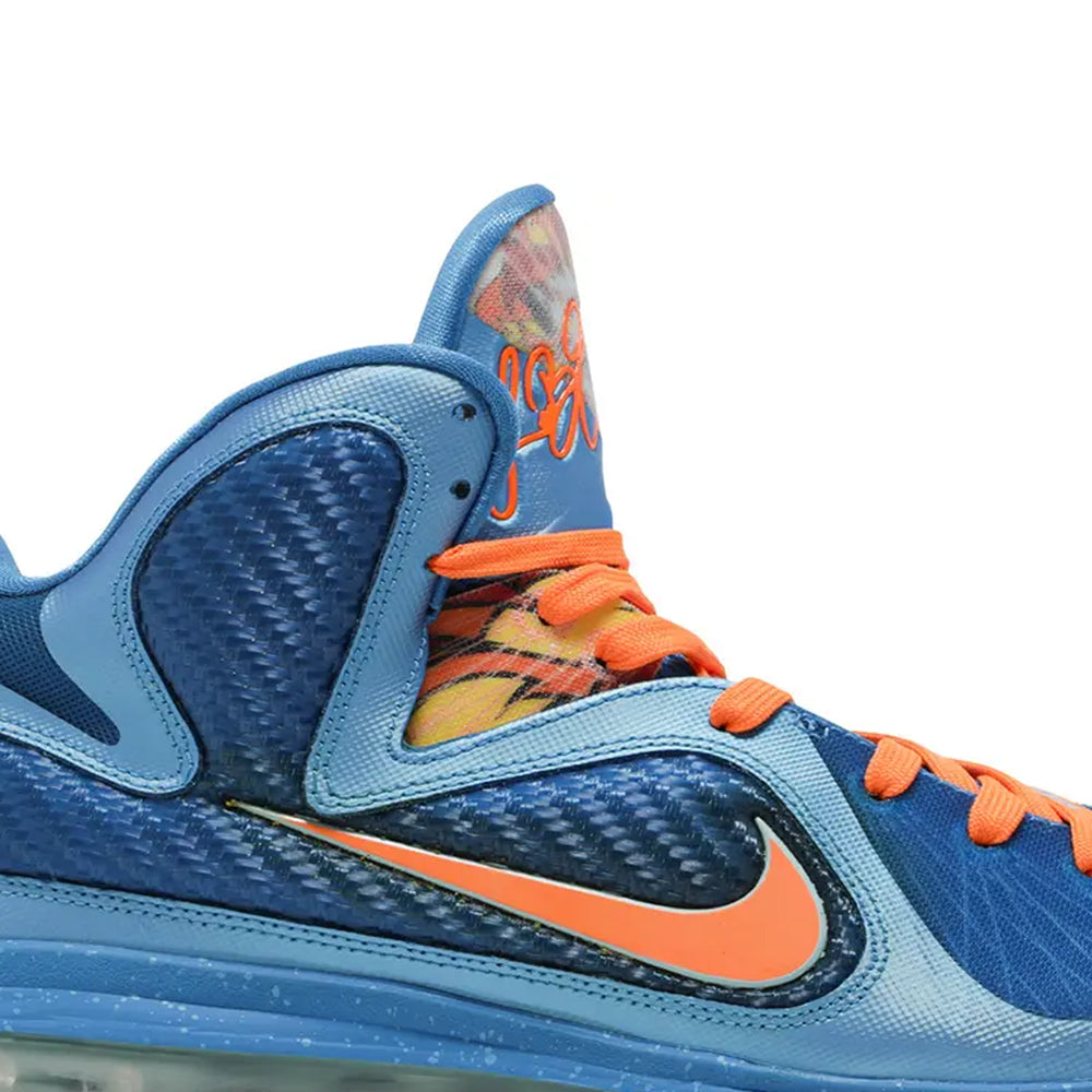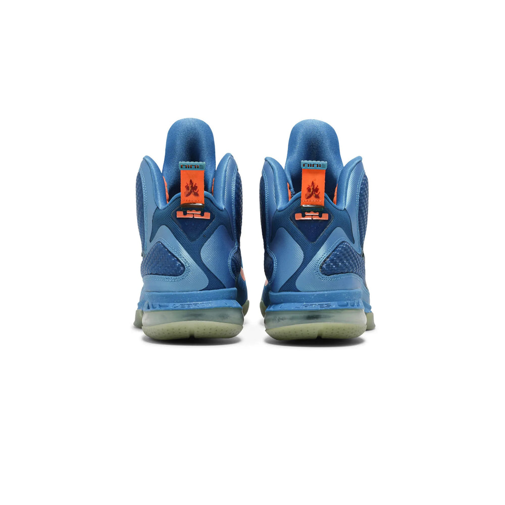 The Nike LeBron 9 'China' (2011) celebrates LeBron James’ global impact and pays homage to Chinese culture with a bold and eye-catching design. Launched as part of the ninth installment of LeBron’s signature sneaker line, this edition merges high-performance technology with culturally significant aesthetics, making it a standout in both basketball and streetwear communities. Overview The Nike LeBron 9 'China' features a striking blue "China" theme with dynamic orange accents, representing energy and power. The upper boasts Hyperfuse construction, providing lightweight durability and ventilation, while Flywire cables offer unparalleled support. A gradient blue-to-orange midsole enhances the sneaker’s bold look, complemented by a translucent outsole for a modern touch. Intricate Chinese dragon graphics on the tongue and insole add a layer of cultural storytelling, symbolizing strength and prosperity. Combining Nike Zoom and Max Air cushioning, this sneaker ensures comfort and performance, whether on the court or off. Key Highlights • Striking 'China' Theme: Features vibrant blue and orange hues inspired by Chinese culture, complete with dragon graphics that symbolize strength and power. • Hyperfuse and Flywire Technology: Combines lightweight breathability with locked-in support for high-performance wear. • Advanced Cushioning: Equipped with Zoom Air in the forefoot and Max Air in the heel for responsive comfort during play or casual wear.