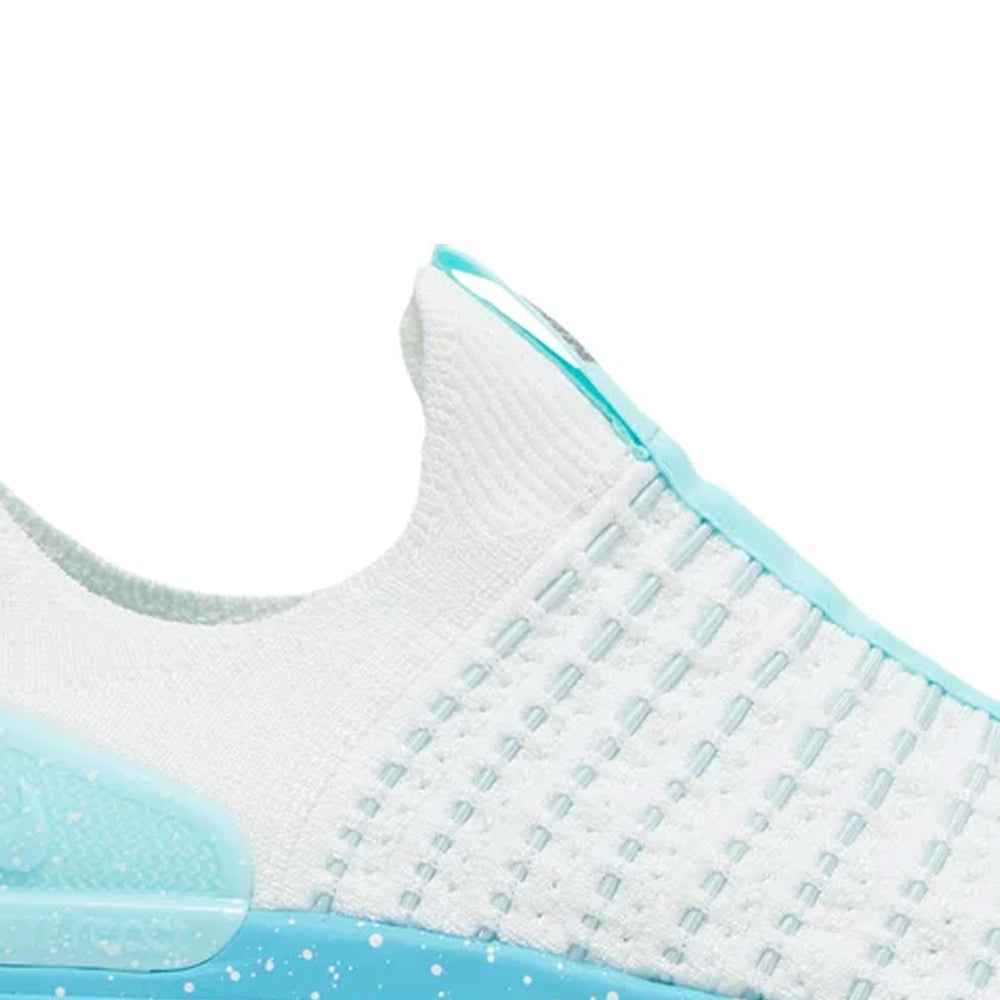 The Nike React Phantom Run Flyknit 2 'White Glacier Blue' features a futuristic design with a white Flyknit upper that hugs the foot for a snug, sock-like fit. The Glacier Blue accents provide a subtle contrast, enhancing the sneaker’s crisp, clean look. What sets this shoe apart is the laceless design, allowing for easy slip-on functionality without sacrificing support. The Nike React foam midsole ensures a cushioned, responsive ride, ideal for long runs or casual wear. The Flyknit upper adapts to the foot’s movements while providing breathability, making it perfect for all-day comfort.