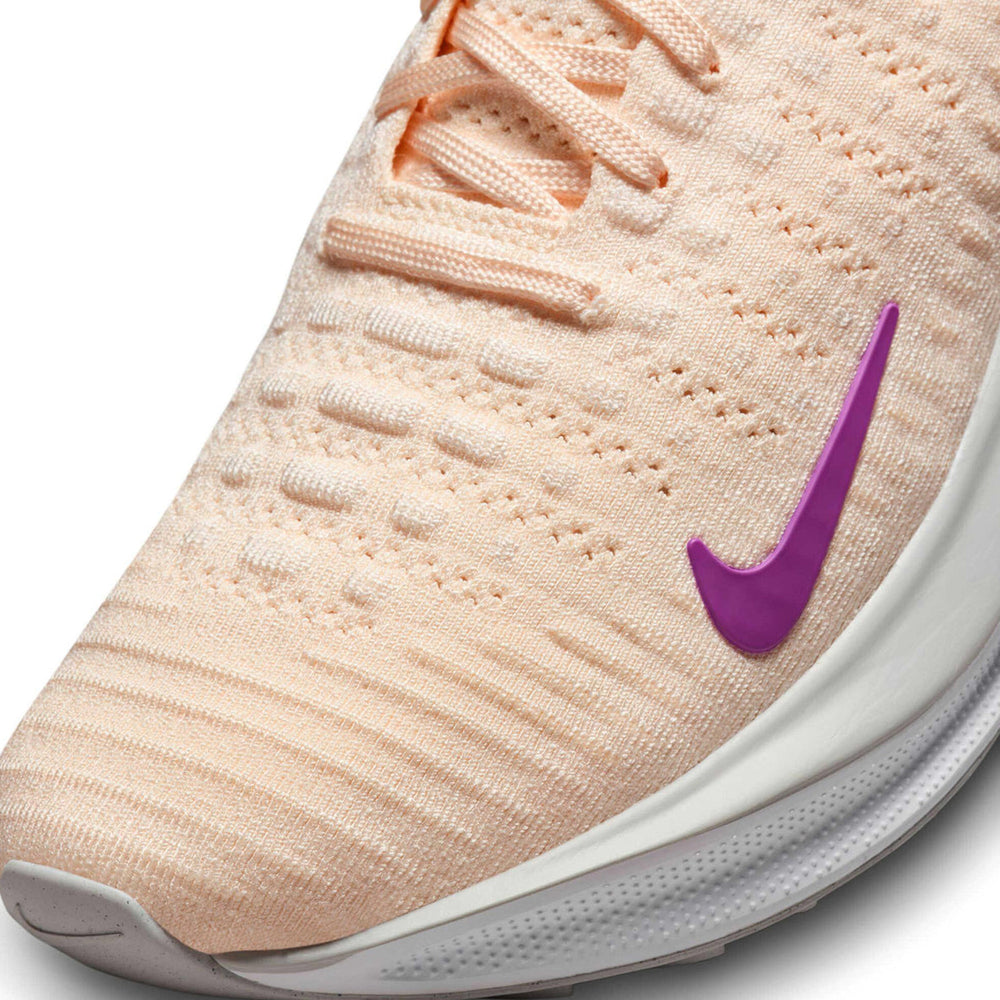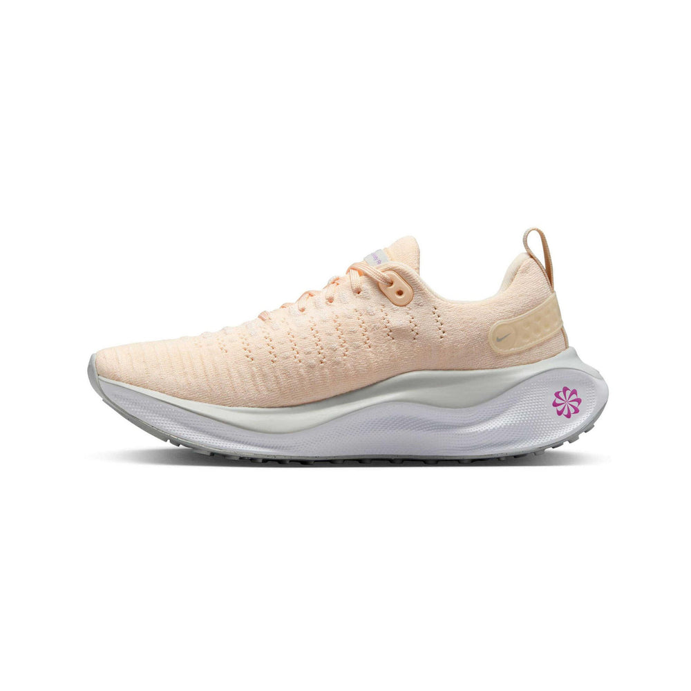 The Nike React X Infinity Run 4 'Guava Ice Vivid Purple' Women's (2023) redefines the fusion of innovative running technology with bold, contemporary aesthetics. Designed to deliver unparalleled comfort and performance, this latest iteration combines Nike's advanced React foam with a vibrant color palette that stands out both on the track and in casual settings. Overview Crafted with a breathable Flyknit upper, the 'Guava Ice Vivid Purple' edition features a pastel "Guava Ice" base, complemented by vivid "Purple" accents on the Swoosh and heel for a dynamic visual impact. A reinforced Flywire system ensures a secure fit, while the midsole incorporates the signature React foam for an ultra-responsive ride. The rocker geometry promotes a smooth transition, reducing fatigue during long-distance runs. Reflective detailing enhances visibility in low-light conditions, and a durable rubber outsole offers superior traction across varied terrains, making this sneaker a versatile choice for runners and lifestyle enthusiasts alike. Key Highlights • Advanced React Foam Technology: Provides superior cushioning and energy return, ensuring long-lasting comfort and performance. • Breathable Flyknit Upper: Lightweight and flexible, offering optimal ventilation and a secure, adaptive fit. • Eye-Catching Colorway: The pastel "Guava Ice" tones contrast vividly with "Vivid Purple" accents for a stylish and modern look.