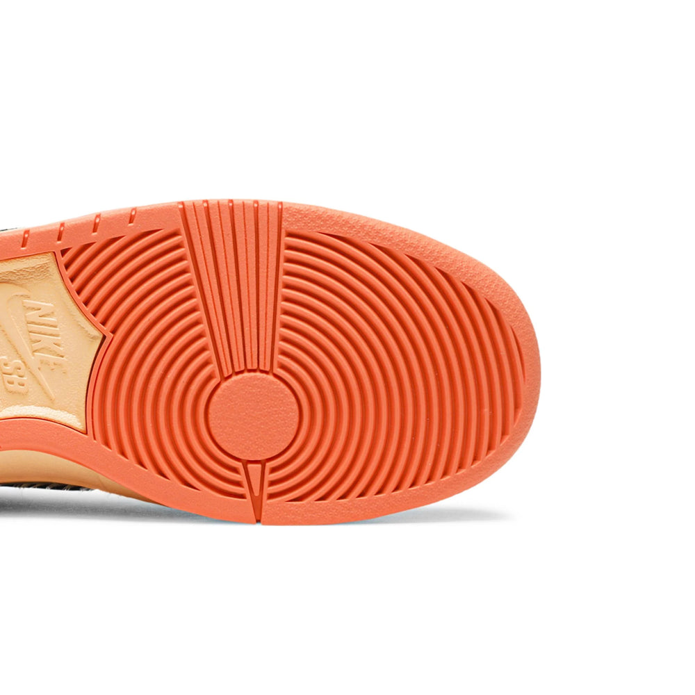Crafted with a premium leather upper in rich hues of brown, green, and orange, the sneaker mirrors the layers of a Turducken, with each panel representing a different aspect of the dish. The quarter panels feature a feather-like pattern, reminiscent of the poultry within the culinary marvel. A plaid inner lining adds a touch of rustic charm, while a gum rubber outsole provides durability and traction. This Dunk High is not just a shoe; it's a culinary journey translated into footwear.