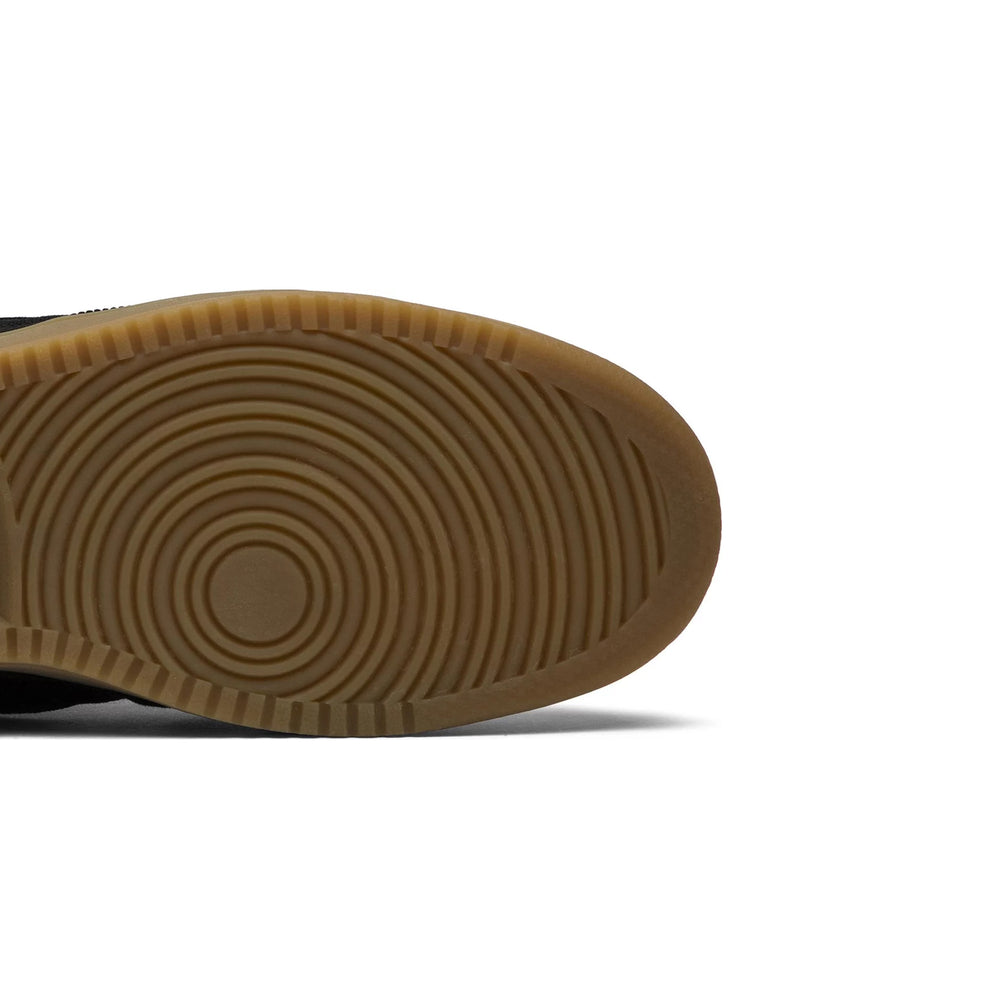 The Nike Vandal High Supreme x Carhartt WIP 'Black' features a black canvas upper, embodying Carhartt's signature workwear toughness. Accents of black corduroy on the heel and ankle strap add texture, while reflective silver Swooshes introduce a hint of contrast. The shoe's rugged design is further emphasized by the use of metal eyelets and a custom Carhartt tongue tag, which elevate its utilitarian appeal. The black rubber outsole ensures a firm grip, making this sneaker as functional as it is stylish. Inside, the sneaker offers a comfortable ride with soft cushioning, ensuring it can handle both the streets and the worksite with ease. The design is finished with a co-branded insole, solidifying the partnership between these two legendary brands.