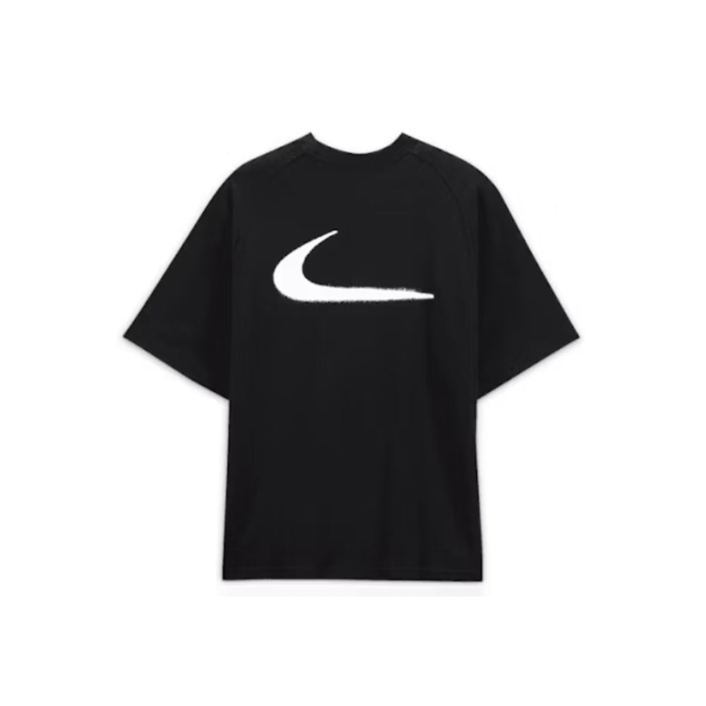 As part of an eight piece clothing line, which also comprised shorts, t-shirts, pants, socks, a crop top, and tights, the Off-White x Nike Spray Dot T-shirt was made available. The front of this specific Off-White x Nike T-shirt is covered with a variety of spray dots, and the Nike Swoosh is positioned on the left breast. The back of the t-shirt features an antique Nike Swoosh that Off-White formerly utilized on clothing lines.