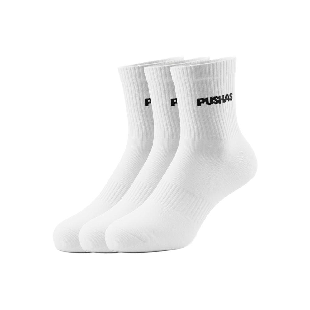 Understated. Clean. Modern. The PUSHAS ‘Lightweight Logo’ Socks land at that mid-crew height—sitting just below the calf for a sharp line with your sneakers. Cut in a unisex medium fit from a breathable, cotton-rich knit, they’re the quiet essential you reach for daily.