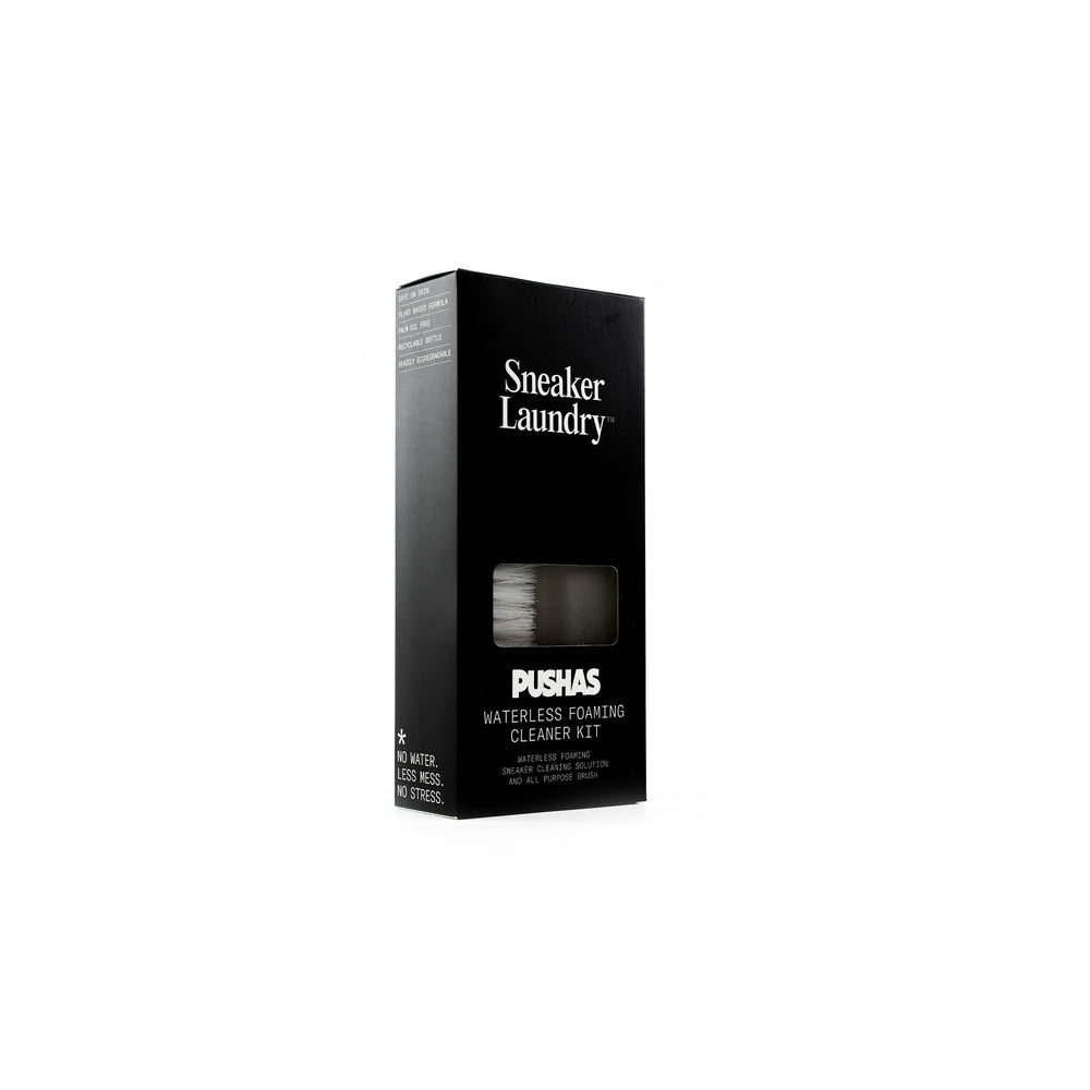 Sneaker Laundry & PUSHAS have joined forces to create a kit that protects delicate shoe materials (ie Suede or Nubuck) from damage during cleaning. This self-foaming solution effectively removes dirt and most stains without the need for water. Once paired with our All-Purpose Brush, you'll be able to clean more durable materials, too - suitable for a wider range of shoes than your Sneaker Cleaning Kit. WATERLESS FOAM CLEANER The waterless foam cleaner is a convenient self-foaming organic solution that effectively cleans, removes dirt and most stains. No water is required - simply apply onto sneakers, brush and wipe. ALL PURPOSE BRUSH This Medium-Stiff Plastic Bristle Brush is a perfect all-rounder brush for durable materials. As well as leather, plastic and rubber, this brush is also highly recommended for midsoles and outsoles.