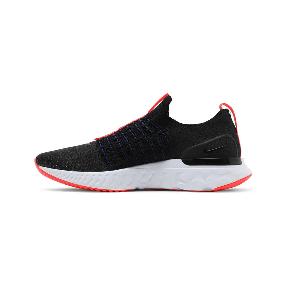 The Nike React Phantom Run Flyknit 2 Black Bright Crimson is a kind of Nike sports shoe. This shoe's internal sole has extra foam in it.