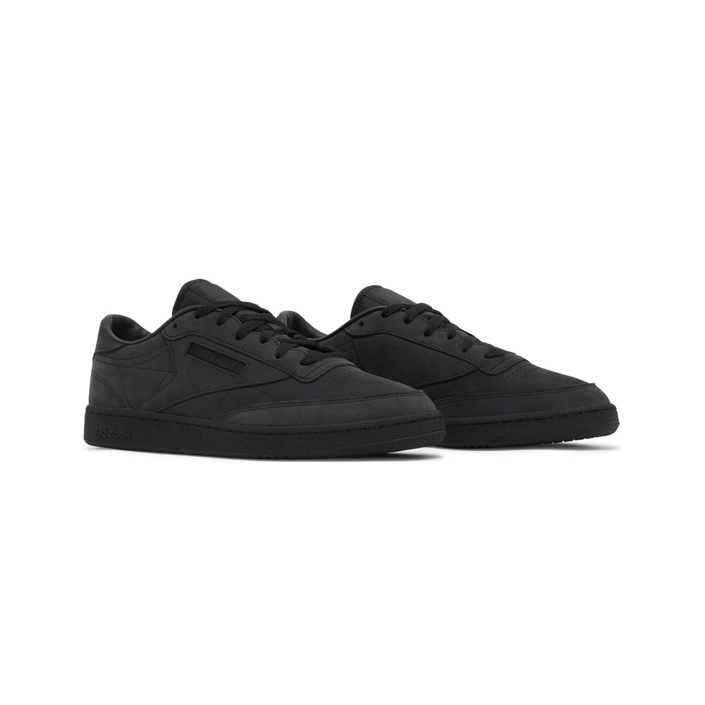 Crafted from premium 'Core Black' nubuck leather, the Reebok Club C 85 JJJJound embodies a sleek, monochromatic appeal that is both versatile and timeless. The upper is meticulously designed, featuring subtle branding with the JJJJound logo embossed on the side panel and a minimalist Reebok branding on the heel. The low-cut silhouette offers a streamlined look, complemented by a cushioned EVA midsole for superior comfort and support. The durable rubber outsole provides excellent traction, making it suitable for everyday wear.