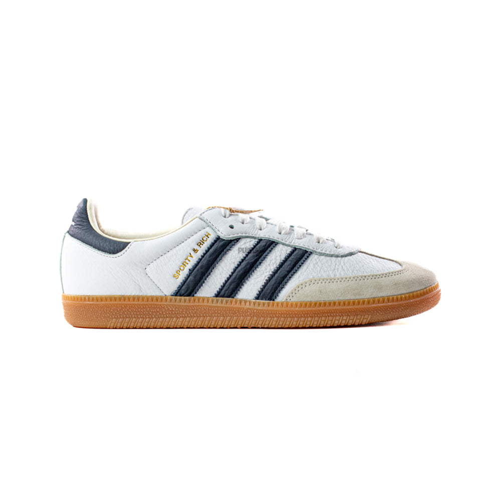 Experience the pinnacle of style and craftsmanship with the Adidas Samba OG x Sporty & Rich 'White Legend Ink' (2023). Whether you're a sneaker enthusiast or a fashion connoisseur, these sneakers are a must-have addition to your wardrobe. Embrace the fusion of heritage and innovation with this standout release and step out in style wherever you go.