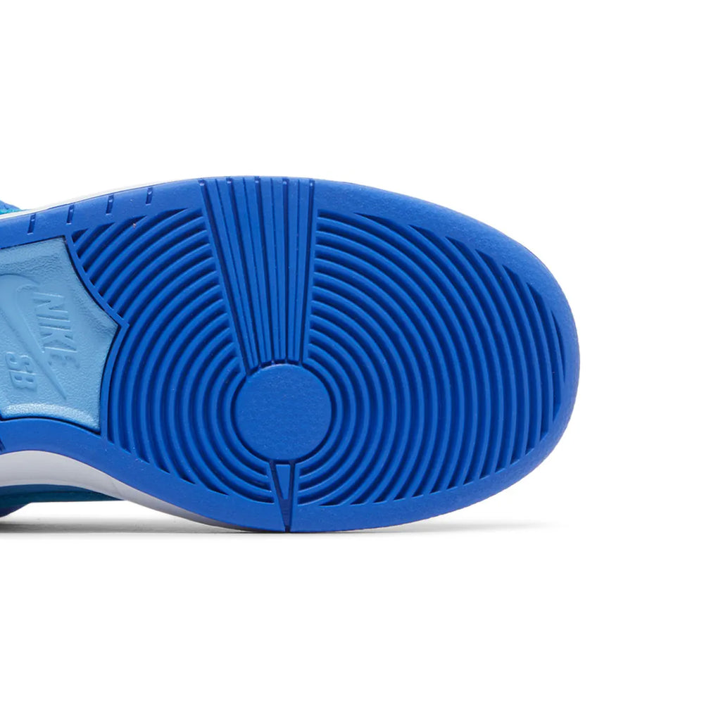 Buy the SB Dunk Low 'Blue Raspberry' (2022) As part of the 2022 Nike SB Fruit Pack, the Nike SB Dunk Low Blue Raspberry features a Laser Blue tumbled leather upper with Racer Blue suede overlays and University Blue Swooshes. On the inside face of the tongue, a woven label depicting a cartoon-style raspberry character adds a playful look to the silhouette. From there, a cushioned Zoom Air sole completes the design.