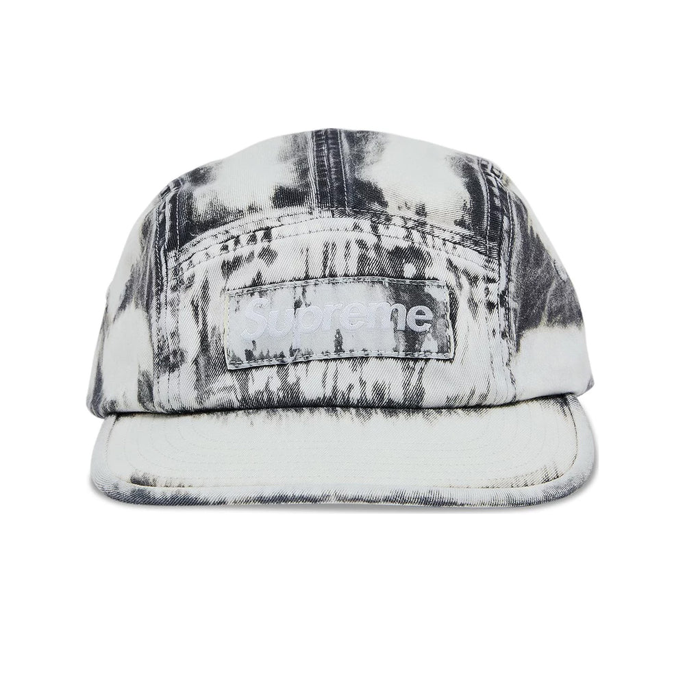 Crafted from chino twill fabric, the Supreme Bleached Chino Camp Cap 'Black' takes a familiar silhouette and infuses it with a striking bleached pattern, giving each cap a unique look. The structured five-panel construction is designed for durability, while the bleached effect adds a worn-in, vintage vibe that resonates with streetwear enthusiasts. Embroidered with the iconic Supreme box logo on the front panel, this cap subtly displays the brand's signature flair. A black adjustable strap on the back ensures a comfortable, customizable fit, making it suitable for all-day wear. Its neutral color palette makes it easy to pair with a variety of outfits, from casual streetwear to more refined looks.